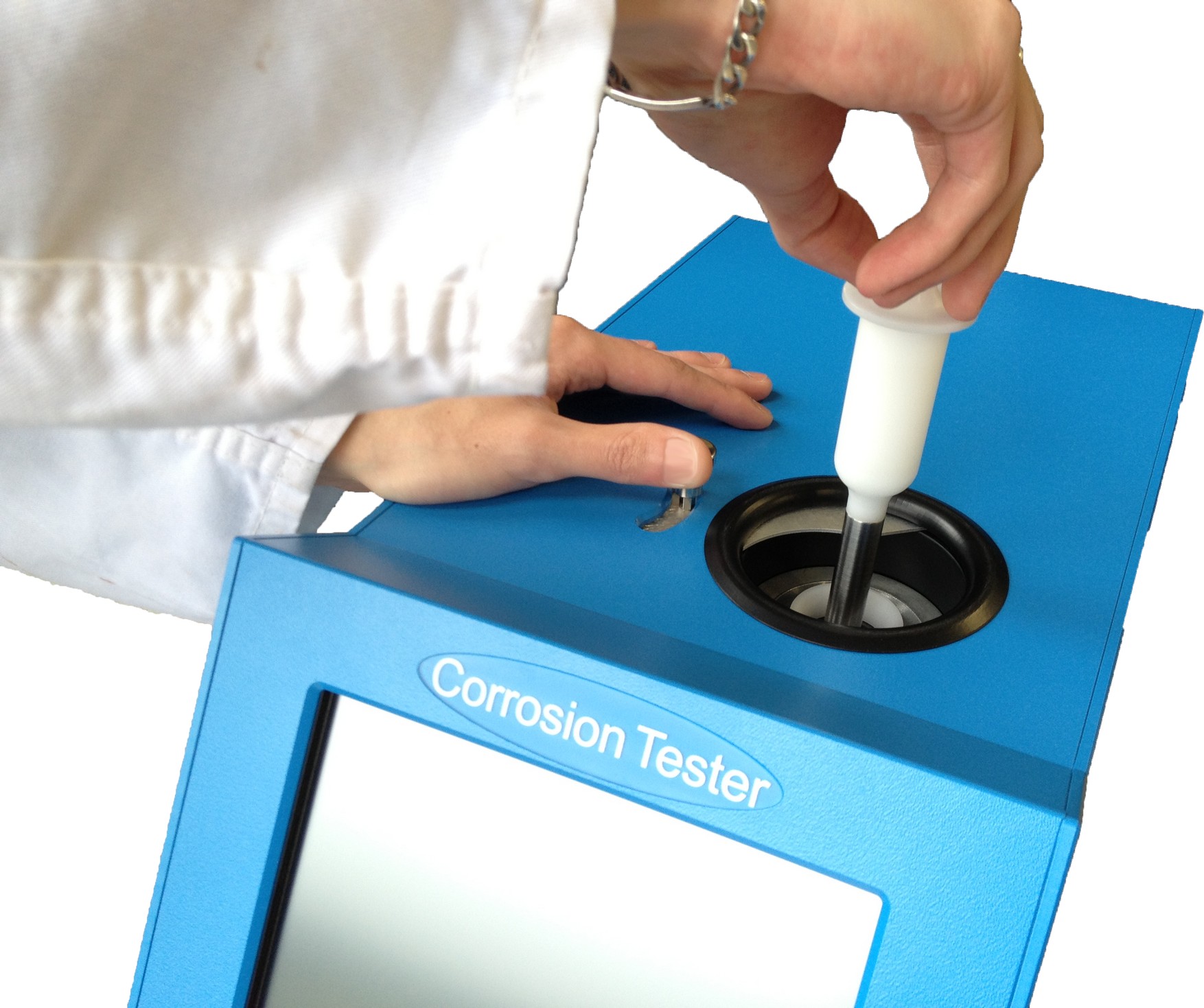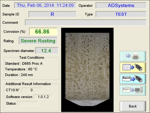 A new instrumental approach for measurement of corroded surface area has been developed by AD Systems in which the exact percentage of corroded area is accurately determined by an automatic instrument reducing test subjectivity. The innovative CT10 instrument images the whole surface of the specimen. Operation is based on a homogeneous lighting source, CCD camera, specimen rotation system, and specially designed Windows CE® application software. The test can now be run unattended // which reduces labor costs.