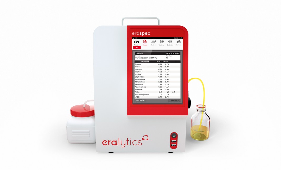ERASPEC is eralytics’ industry-proven multi-fuel analyzer with several thousand installations worldwide. It offers measurements of fuel component concentrations, complex properties like RON or cetane number, and density for gasoline, diesel fuel, jet fuel and even specialized fuels like ethanol fuels. A single push of a button delivers all results within 1 minute.