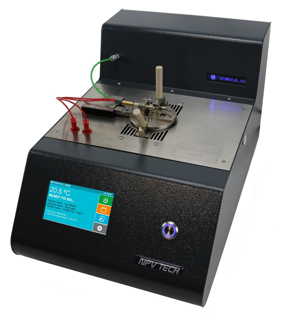 Offering an automated analysis, the NPV Tech is a quick measuring apparatus of the flash point tester on small volumes, 2mL or 4mL. Could cover from -30°C to 300°C, it reaches in few minutes with the utilization of an electric igniter, to detect the flash point of samples. Equipped of integrated methods, the apparatus is ready for an immediate operation. Moreover, the sample cooling is done actively by fan or cryostat. Finally, with the help of a boarded software easy to use and a convivial interface for the user. Concerning the security, in case of overheating, an audible alarm activates.
